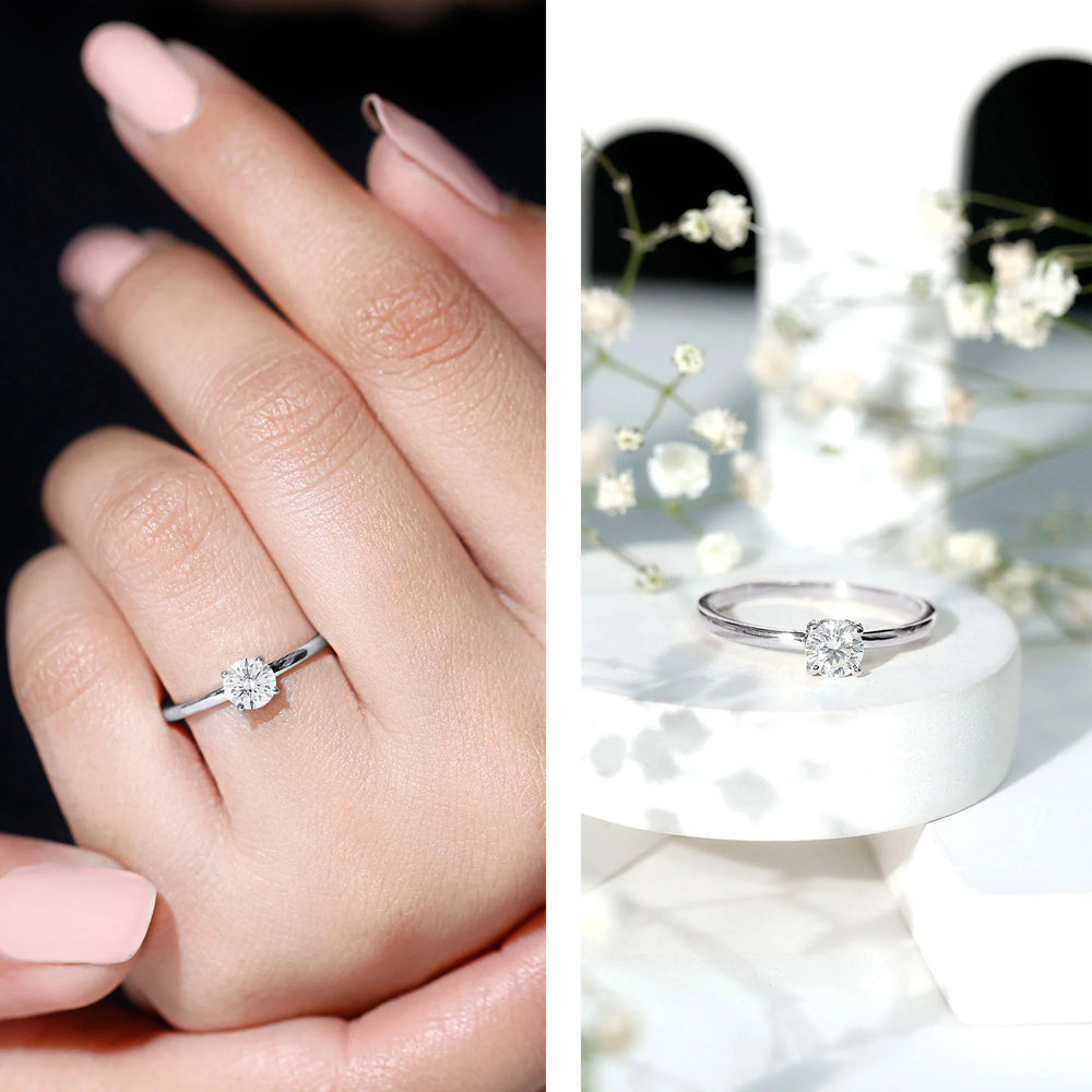 The timeless elegance of a Moissanite Solitaire Ring will always remain in style. It showcases a stunning 5 MM Brilliant Round Cut Moissanite, expertly set in a secure Claw Setting. This Solitaire Promise Ring is a perfect way to make your loved one feel truly cherished and special. This ring is a classic fusion of style and sophistication that expresses your love for your special one. This Round Moissanite Ring will steal her heart with the unmatchable shine of D-VS1 Quality Moissanite embedded at the center of the ring. This ring will be delivered to you in premium quality packaging ensuring that your feelings attached to this ring are safe and secure.